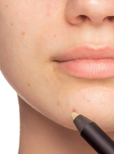 The best way to conceal redness and blemishes is with a concealer stick. Green-coloured concealer visibly balances out the appearance of redness, and can be applied with precision thanks to the stick’s fine tip.