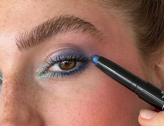 For your festival makeup look, bright colors are a must-have. Apply the High Performance Eyeshadow Stylo N°58 to the lower lash line and apply eyeliner thinly to the upper lash line. Blend the blue shade using a fluffy eyeshadow brush. Apply a light-turquoise eyeshadow to your inner eye corner to make your eyes look bigger.