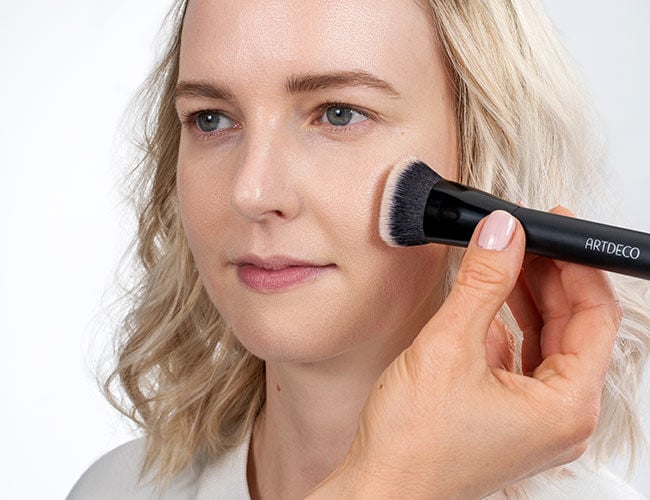 El resultado será más homogéneo si aplicas la fórmula con una brocha especial para bases de maquillaje.