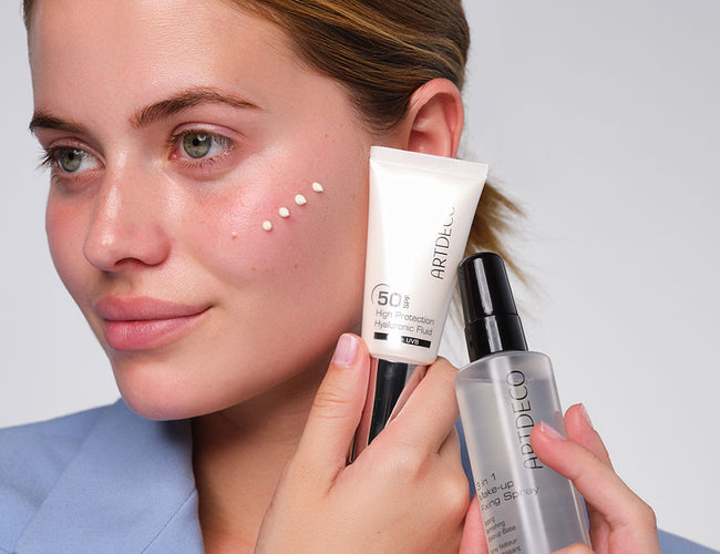 Commencez par appliquer un primer qui prépare votre peau à accueillir le maquillage tout en la protégeant des rayons UV. Vous pouvez également prolonger la tenue de votre maquillage en utilisant un spray fixateur.
