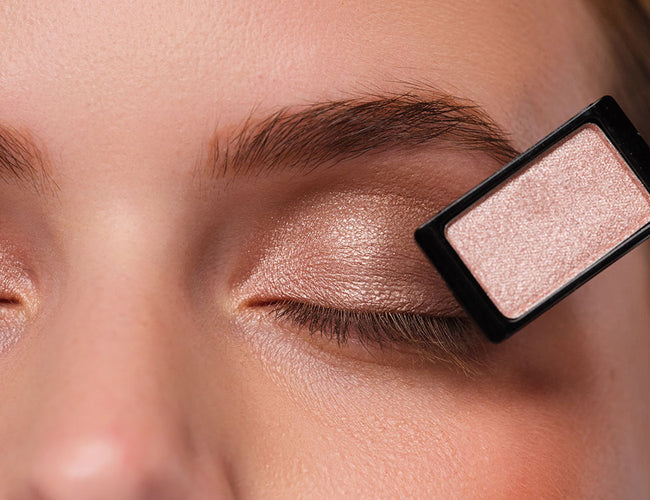 Appliquez un fard à paupières clair et lumineux dans le coin interne de l’œil et sur la moitié avant de la paupière afin d’agrandir et d’illuminer votre regard.