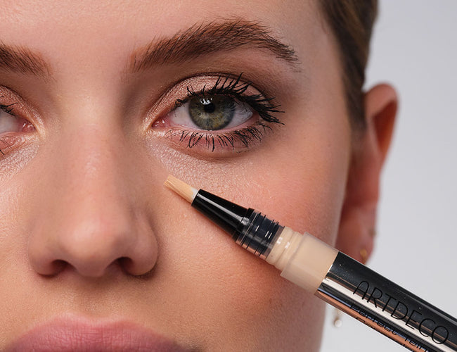 Pour camoufler rapidement et facilement les rides, les cernes et les ridules, il vous suffit d’utiliser un correcteur. Il est conseillé d’appliquer le produit à l’aide de l’applicateur intégré et de l’estomper à l’aide d’un pinceau anticernes.
