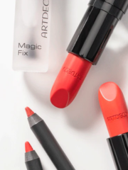 Per un make-up labbra volumizzante e a lunghissima tenuta, applica un lieve strato di Magic Fix sulle labbra.