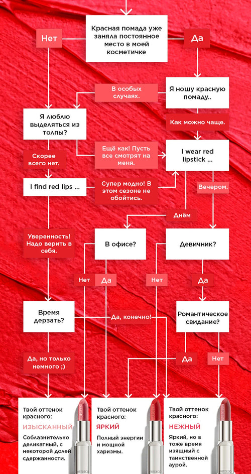 Но какой оттенок красного подходит тебе – в повседневной жизни или на свидании? Пройди тест и найди свой оттенок красного.